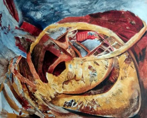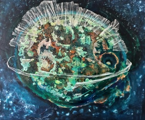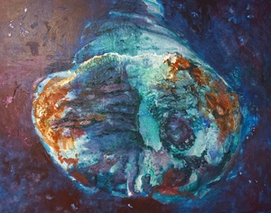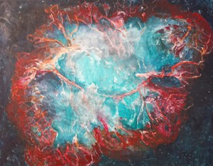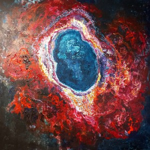 Wat is werkelijkheid? Werkelijkheid is alles wat er nu is en weer weg. Zo ook in de kosmos, de ruimte om onze aarde. Daar waar zoveel mooie werkelijkheden elkaar ontmoeten en weer verder stromen. Ik schilder vanuit mijn herinnering hoe de werkelijkheid kan zijn en vastgelegd wat er niet meer is . Ik verwonder me.... over de sterren die licht brengen in het donker. Ik zie de kleuren als ze doven. Opgenomen in het Heel al. Net als ik ! Eén met al !